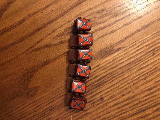 Wooden Bracelet CSA Rebel Battle Flag Beads and Round Spacers
